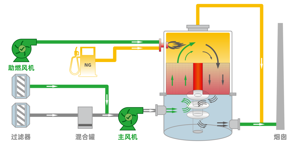 ?? 高效的廢氣治理解決方案 聯系我們獲取方案 首頁 Shop 產品 熱氧化設備 RCO-蓄熱式催化燃燒設備 RCO-蓄熱式催化燃燒設備 RCO(Regenerative Catalytic Oxidizer,蓄熱式催化氧化器)是一種高效、環保的廢氣處理技術,主要用于處理含有揮發性有機化合物(VOCs)的廢氣?。 分類: 熱氧化設備 描述 RCO是利用催化劑將VOCs分解成為水和二氧化碳,同時利用蓄熱體的蓄熱能力對VOCs氧化反應產生的熱量進行循環利用的工業有機廢氣凈化裝置。主要包含換向閥,蓄熱床,催化床,加熱器等設備。?是一種新的催化技術,它具有RTO高效回收能量的特點和催化反應的低溫工作的優點。相比于RTO具有自平衡濃度低,運行能耗省,爐膛溫度低等優點。 RCO RCO與RTO的蓄熱原理和切換順序大致相同。生產排出的有機廢氣經過蓄熱陶瓷的加熱后,溫度迅速提升,在爐膛內燃氣燃燒加熱作用下,溫度達到250~300℃,有機廢氣中的VOCs在催化劑作用下分解成二氧化碳和水,并放出熱量,然后流經溫度低的蓄熱陶瓷,大量熱能即從煙氣中轉移至蓄熱體,用來加熱下一次循環的待分解有機廢氣,高溫煙氣的自身溫度大幅度下降,再經過熱回收系統和其他介質發生熱交換,煙氣溫度進一步降低,最后排至室外大氣。 ? 處理流程 含有有機污染物的廢氣首先被引入RCO系統,經過預處理單元去除顆粒物、粉塵等雜質?。 預處理后的廢氣進入蓄熱室,與蓄熱體進行熱量交換,被預熱到一定溫度?。 預熱后的廢氣進入催化反應室,在催化劑的作用下與氧氣發生氧化反應,轉化為無害物質?。 反應后的高溫氣體帶著大量熱量進入另一個蓄熱室,將熱量傳遞給蓄熱體,為下一個循環的廢氣預熱儲備能量,然后排放?。 適用行業 RCO適用大風量,低濃度的行業,常見如汽車、造船、摩托車、自行車、家用電器、集裝箱等生產廠的涂裝生產線。石油、化工、橡膠、油漆,涂料、制鞋粘膠、塑膠制品、印鐵制罐、印刷油墨、電纜及漆包線等生產線的廢氣處理。 相關產品 CO-催化燃燒爐 RTO-蓄熱式氧化爐設備